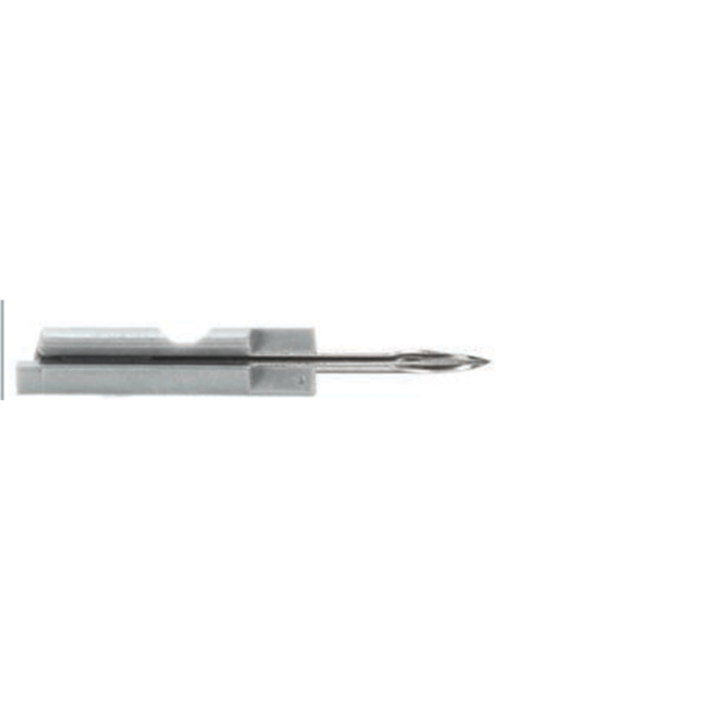 The 11041-1 Micro Fastener Needle is the thinnest needle ever created by Avery Dennison, with an outside needle diameter of 0.047 inches (1.19mm). This needle features a new surface polish technique that prevents it from damaging fabrics. It delivers a unique T-End fastener that secures items tightly and quickly, yet is easy to remove. The nominal length of the needle is 1.06 inches (27mm), and its effective length is 0.16 inches (4mm). The shortest effective fastener it can create is 1.33 inches (3.4mm).